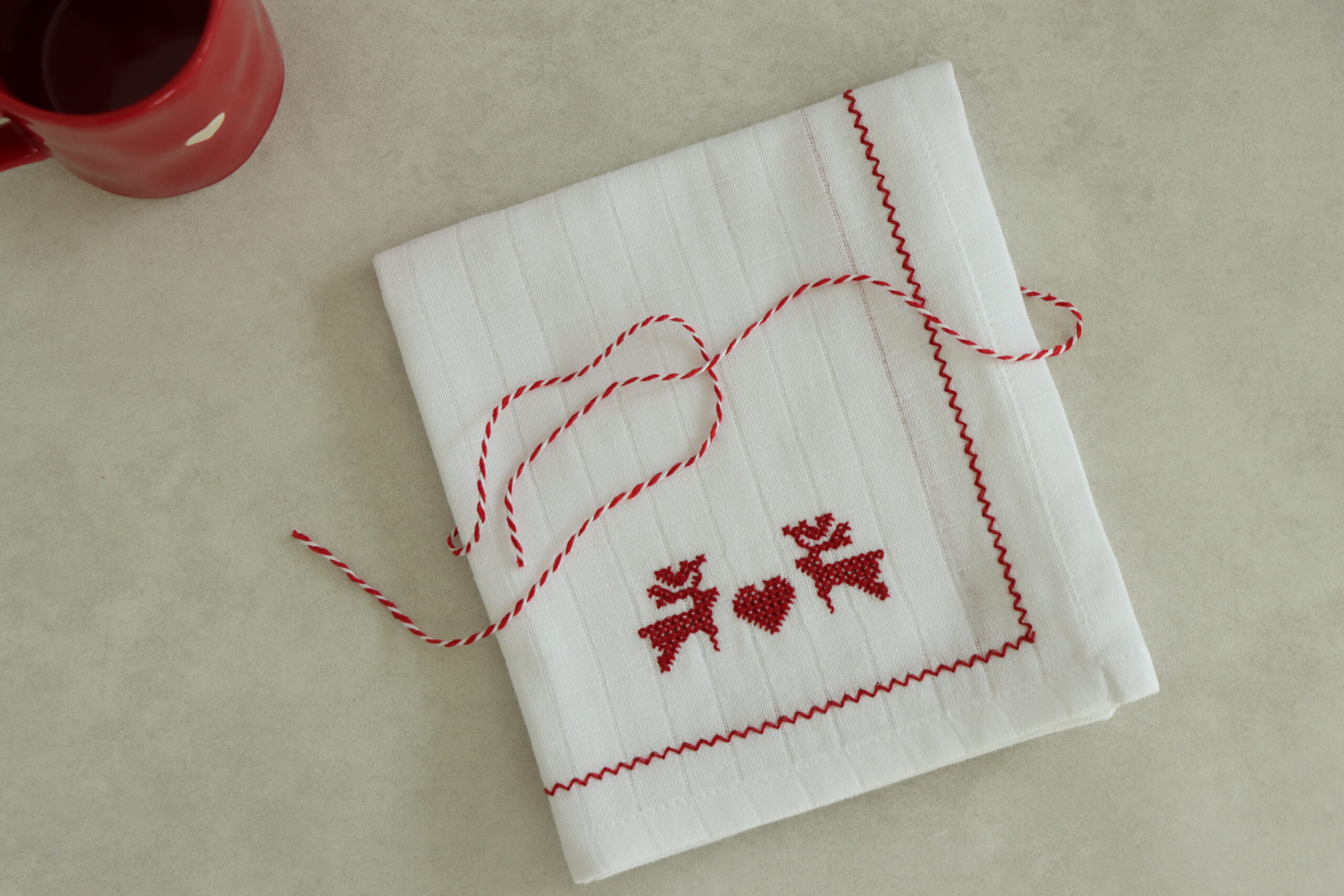 Geyik Ve Kalp Nakışlı Kurulama Peçetesi